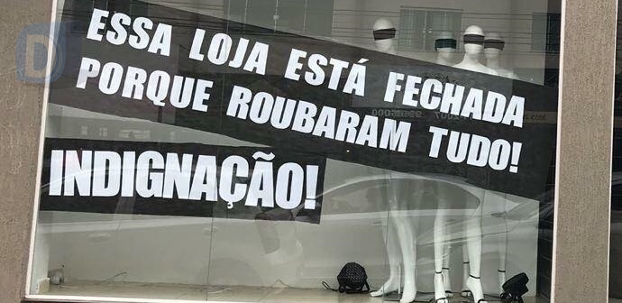 A mulher de 28 anos instalou neste sábado (28), faixas de protesto na vitrine de uma de suas lojas, a qual durante a madrugada da última quinta-feira (26) foi arrombada e teve todo o estoque levado pelos criminosos. O estabelecimento localizado na Avenida Arapongas havia sido inaugurado há poucas semanas.
